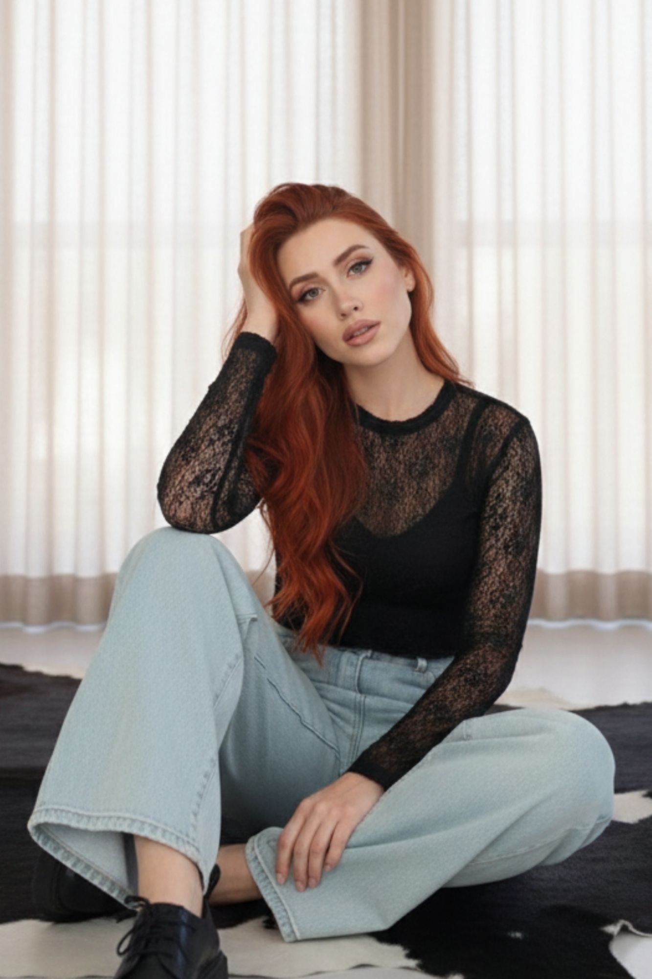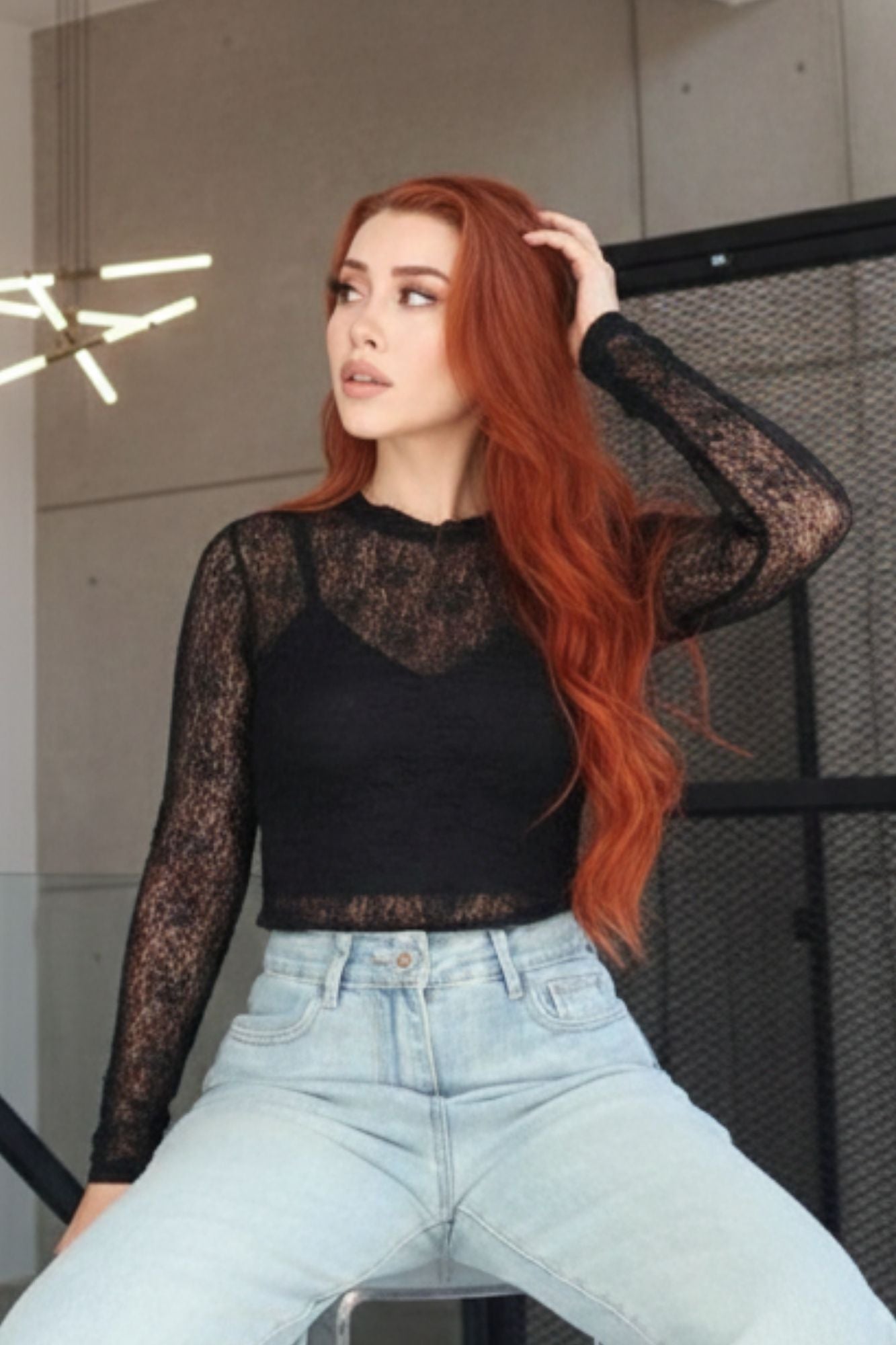 Blusa de encaje c/top tirantes negraEstira un poco y es suave al tacto