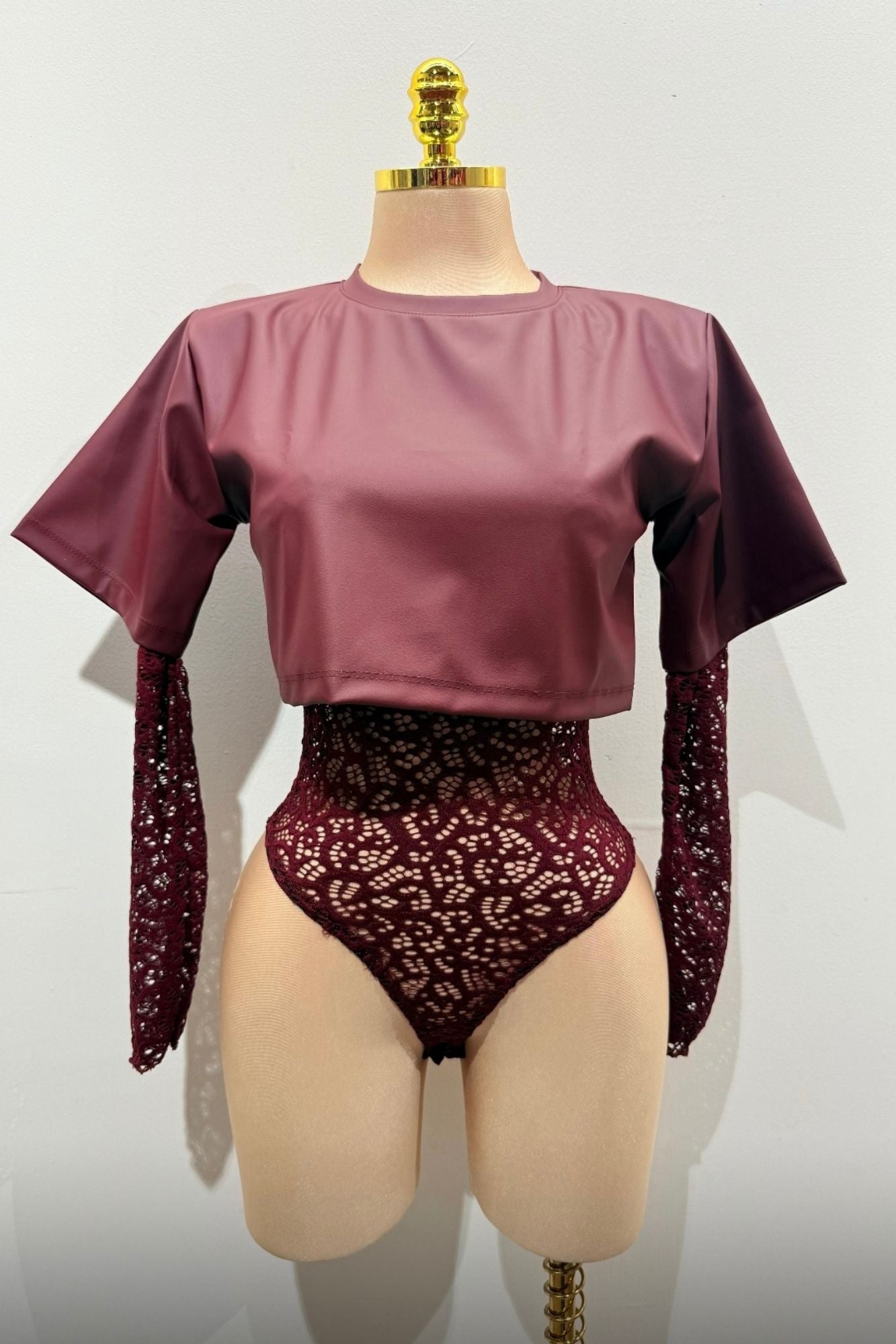 Body suit encaje c/t-shirt vinipiel vinoNo estira, viene a la talla