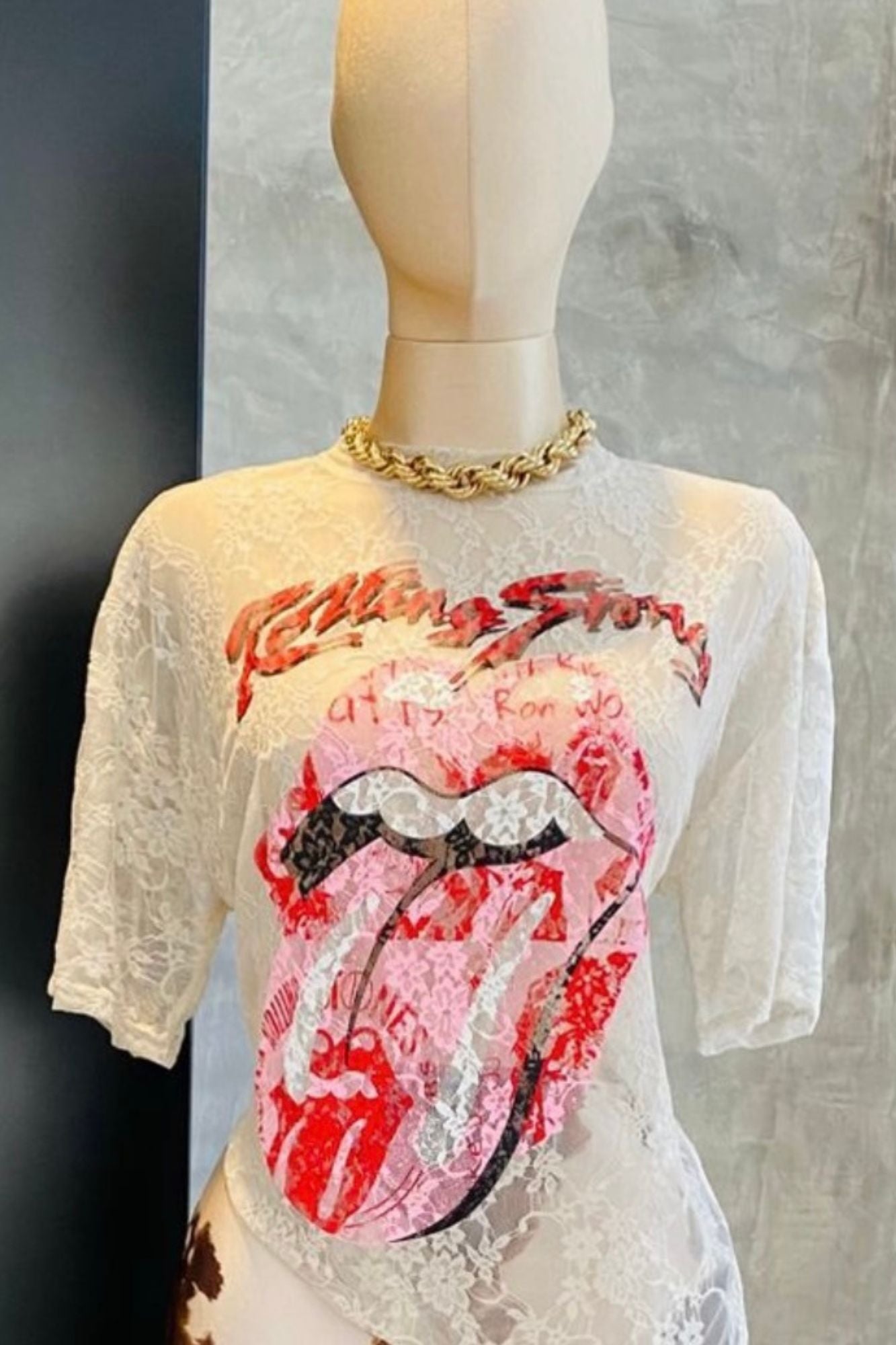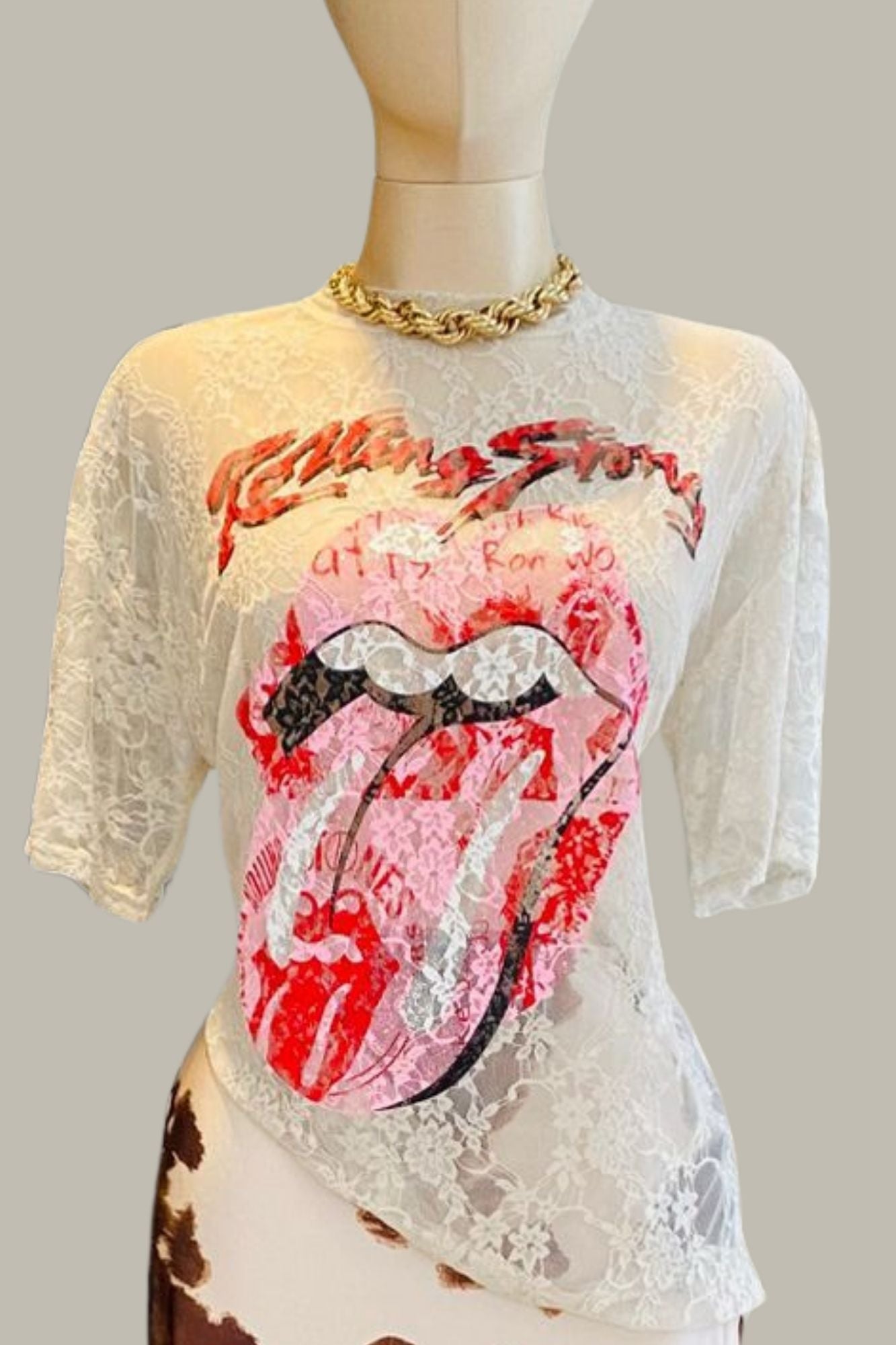 Playera Unitalla encaje en color beige con estampado Unitalla da hasta una talla 36