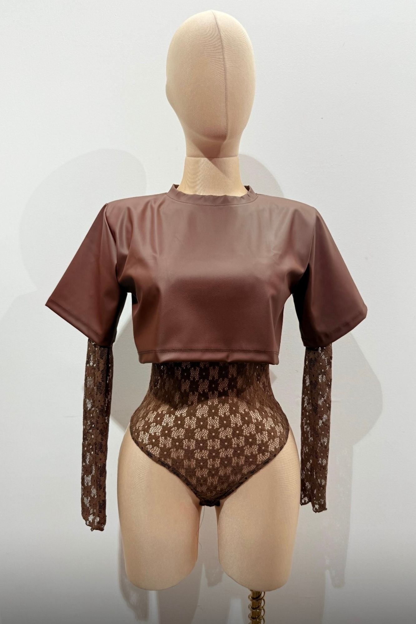 Body suit encaje c/t-shirt vinipiel chocolateNo estira, viene a la talla