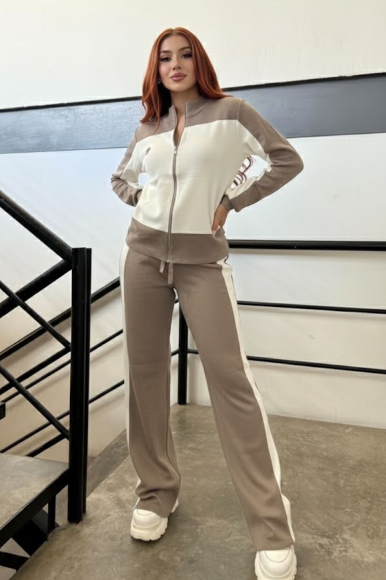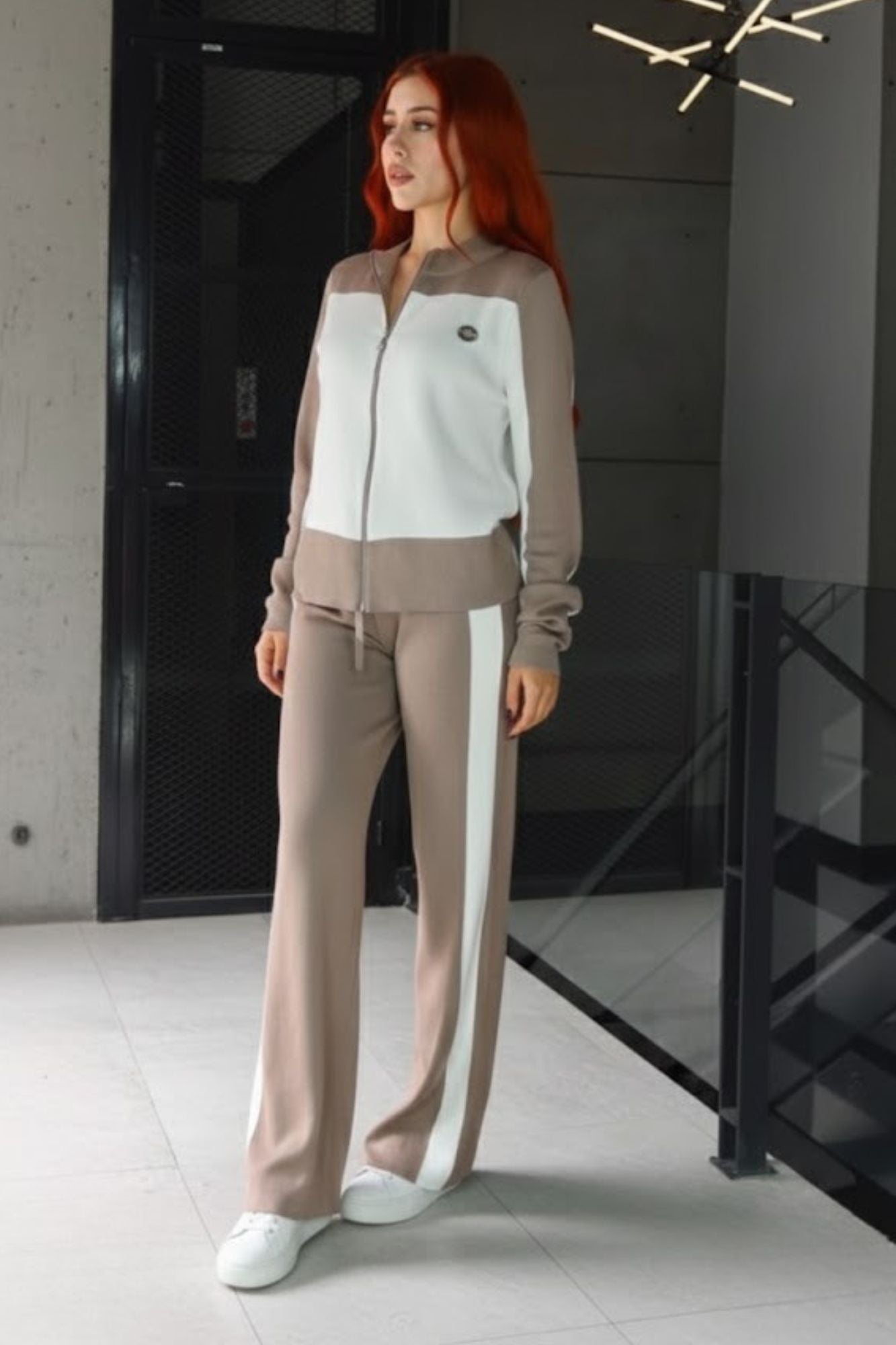 Set tejido punto dominic pantalón y chamarra beige c/ivory