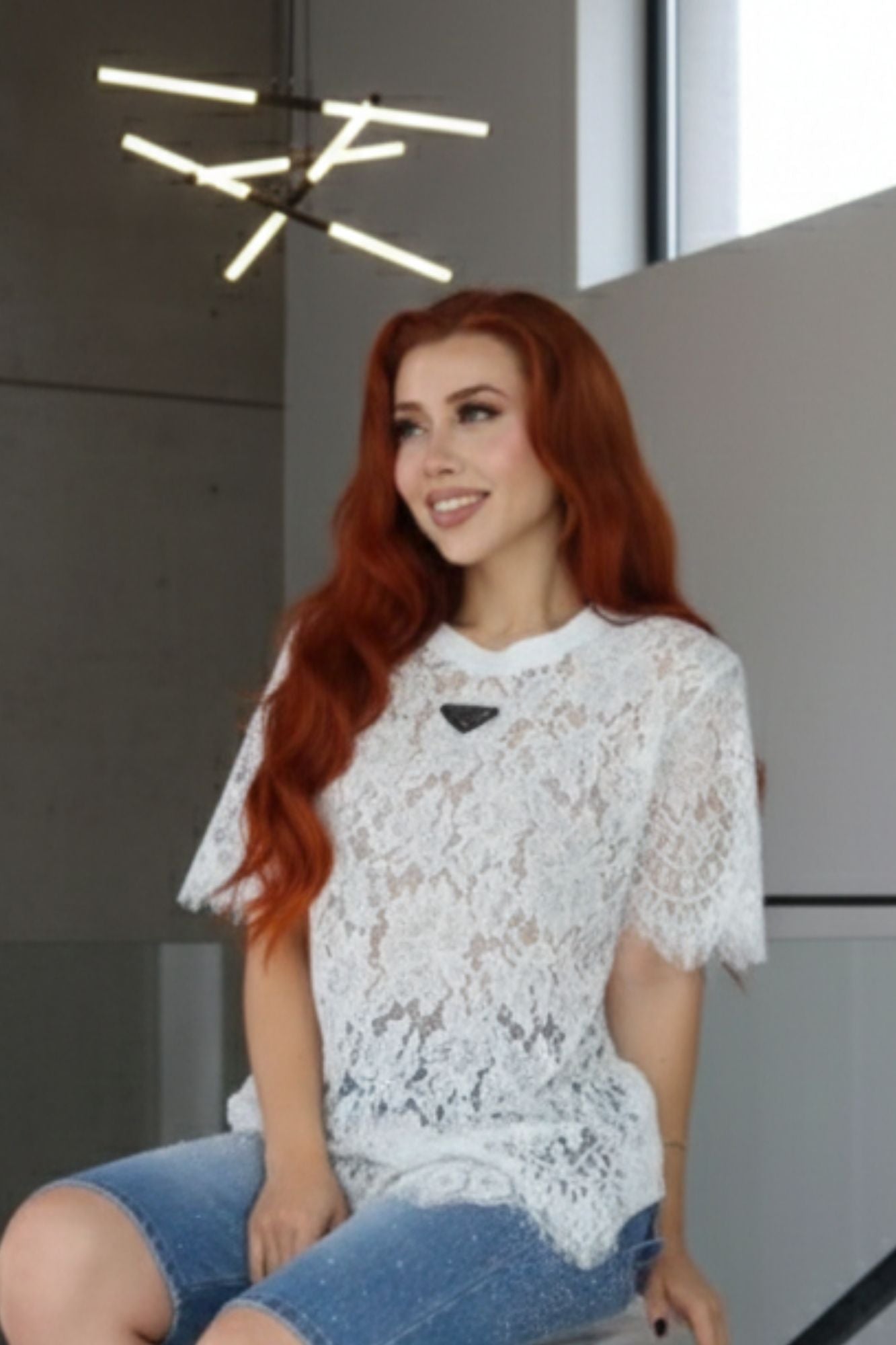 T-shirt blanca de encaje, dupe Prada